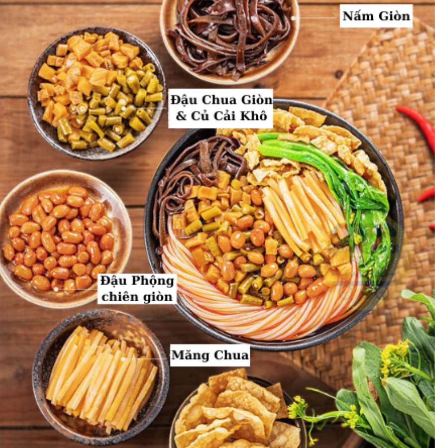 - Thơm ngon: nước dùng đậm đà, sợi bún mềm dai, mùi vị đa dạng và đặc trưng ẩm thực Trung Hoa.