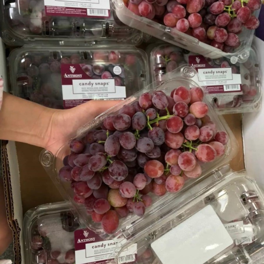Nho Đỏ Kẹo Candy Snaps Mỹ rất nhạy cảm, dễ bị rời ra khỏi cành do đó nho được đóng trong các hộp nhựa để đảm bảo chất lượng tốt nhất cho trái nho trong quá trình bảo quản và vận chuyển.