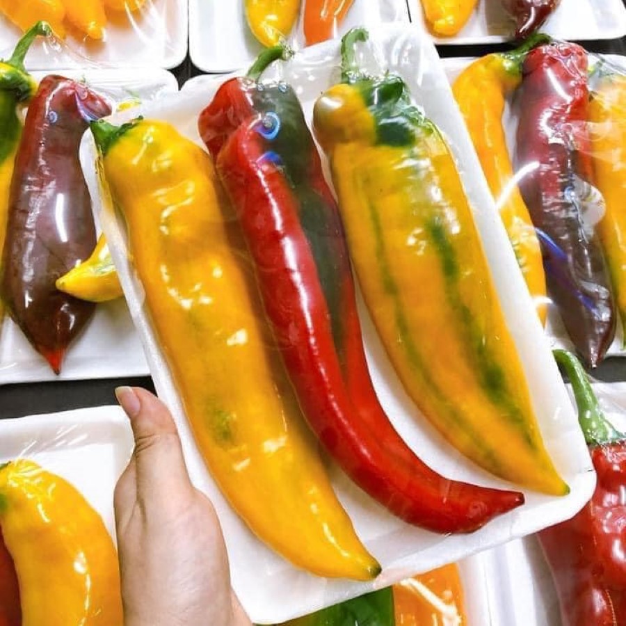 Ớt trái cây Sweet Palermo được mệnh danh là vua của các loại ớt có hình dáng thuôn dài không cay, không hăng, có vị giòn, ngọt và mọng nước, có thể ăn trực tiếp như một loại trái cây.